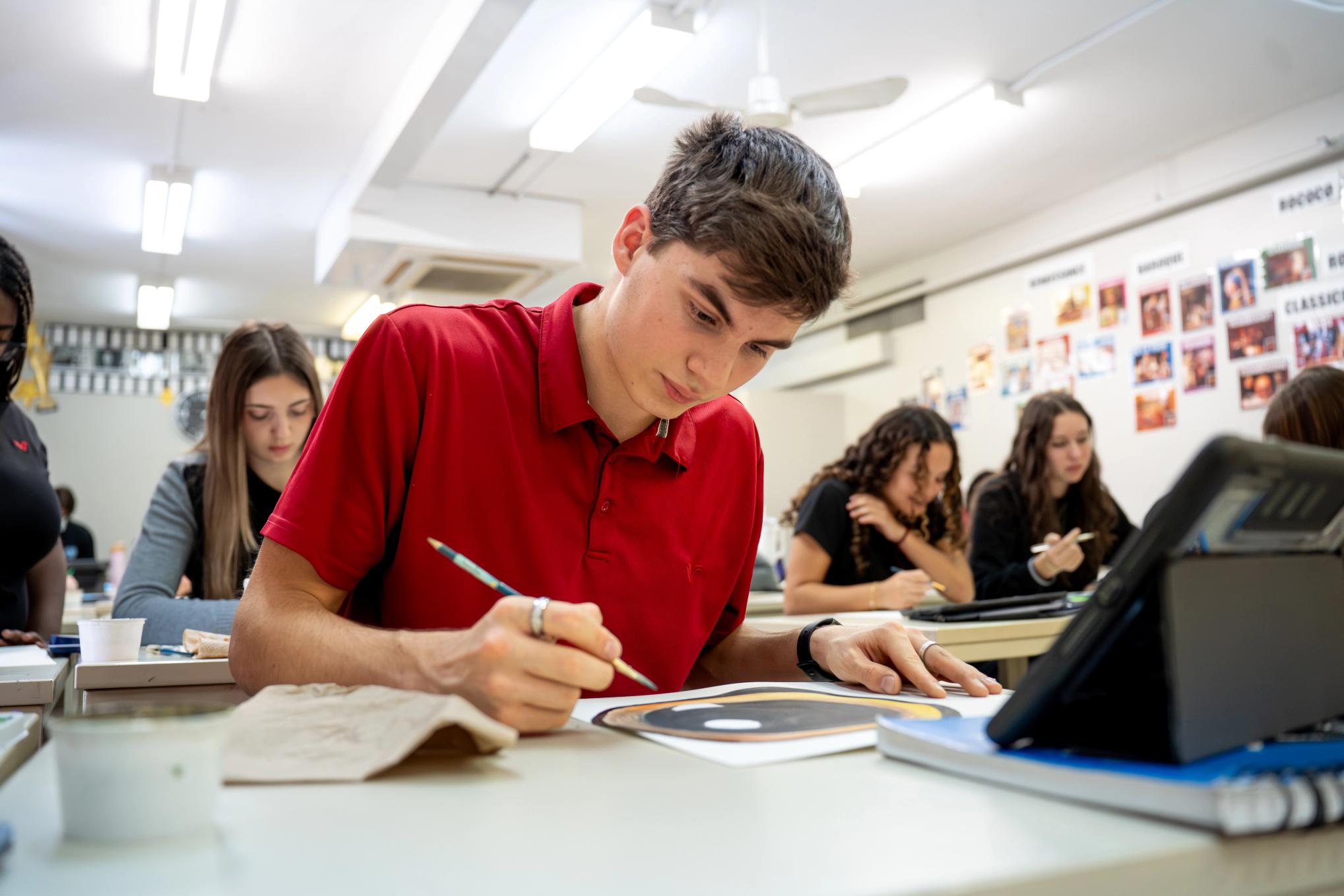 Au Collège, le cheminement pédagogique en art s'amorce dès l'admission, permettant aux futurs élèves de choisir une voie qui les passionne pour l'ensemble de leur parcours de cinq ans. Que ce soit en musique ou en arts plastiques, ce choix durable favorise une progression rigoureuse et cohérente des apprentissages au fil des étapes du secondaire. Cette structure unique permet à l’élève de bâtir des bases solides, d'approfondir sa maîtrise technique et de voir son talent évoluer au sein d'un parcours artistique réfléchi et enrichissant.